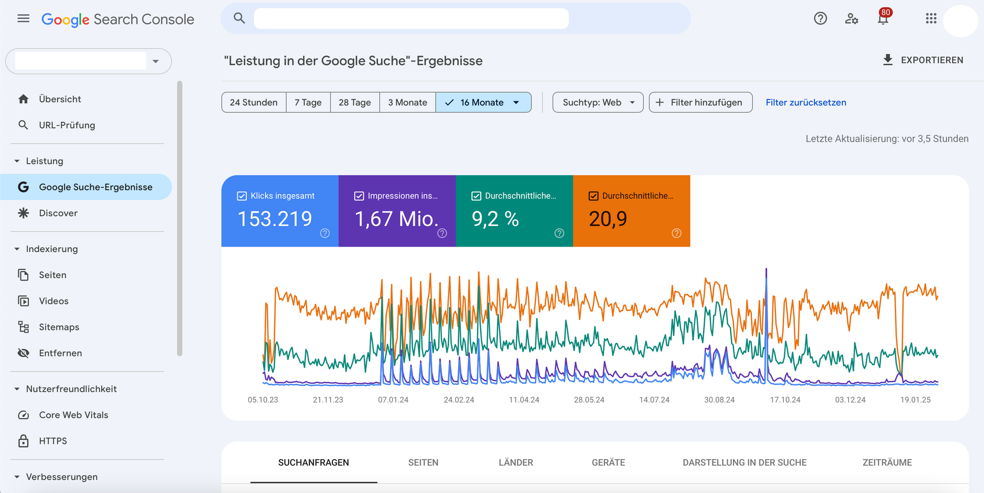 Die Google Search Console ist ein kostenloses Tool von Google, mit dem du analysieren kannst, wie deine Website in der Google-Suche performt. Sie zeigt dir Fehler, Verbesserungspotenziale und liefert dir Daten, mit denen du dein Ranking verbessern kannst.